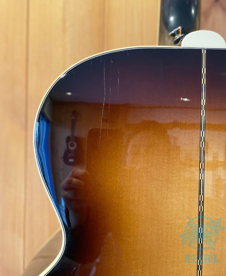 多くの伝説的ミュージシャンも愛したギブソン・アコースティックの王者SJ-200中古品が入荷しました。 シトカスプルース・トップ、メイプル・サイド/バック、17インチのボディー。メイプル・ネック、ローズウッド・指板。 ローズウッドの特徴的なマスターシュ・ブリッジ。647.7o・スケール、ナット幅・約43o。L.R.Baggs Anthem搭載。 バックにクラックの修理歴、ナット/サドル交換あり。ジャンボボディーのふくよかなメイプルサウンドが魅力。6.5-10